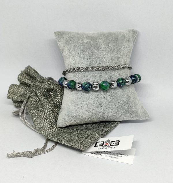 Materiale: Agata Bicolore Verde/Blu. I distanziatori e la chiusura sono materiali anallergici e nickel-free.