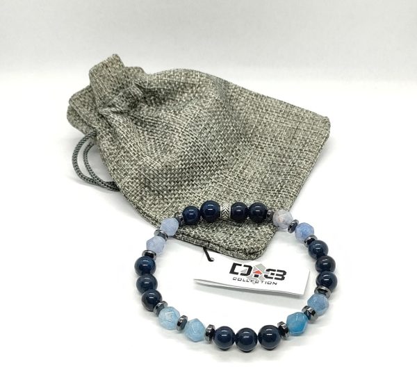 Materiale: Agata Blu e Cristallo di Acqua Marina. I distanziatori e la chiusura sono materiali anallergici e nickel-free.