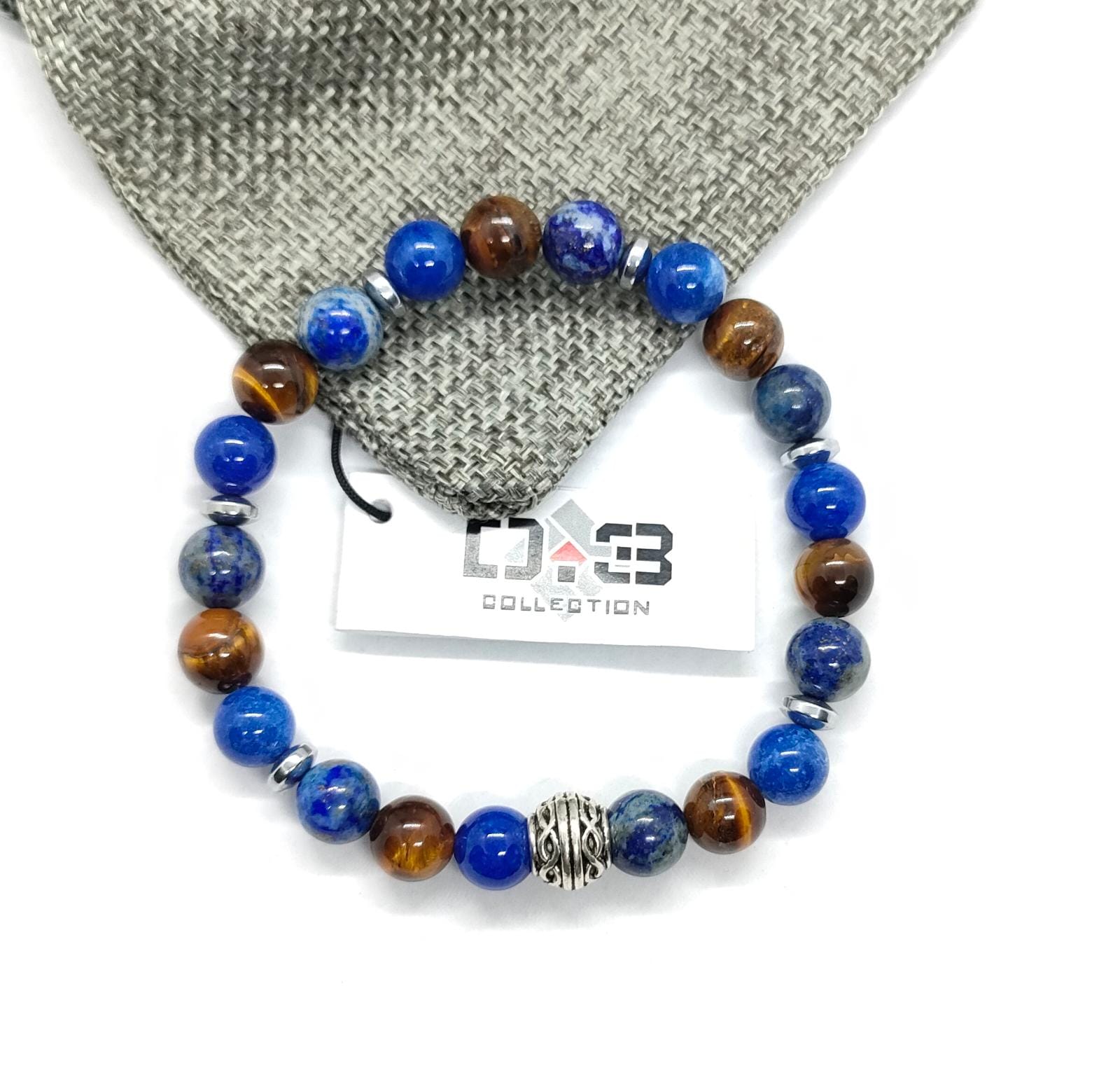 Materiale: Pietra di Lapislazzuli ed Occhio di Tigre. I distanziatori e la chiusura sono materiali anallergici e nickel-free.