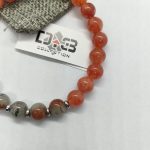 Materiale: Agata Liscia Arancione e Agata bicolore striata Arancio/Grigio. I distanziatori e la chiusura sono materiali anallergici e nickel-free.