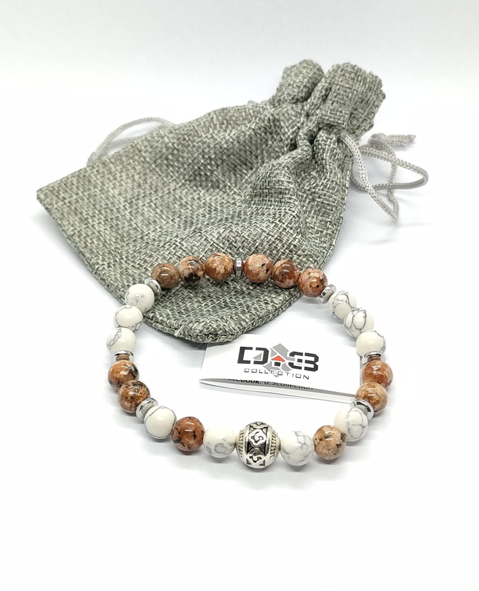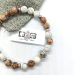 Materiale: Pietra di Howlite Bianca Venata ed Agata Marroncina. I distanziatori e la chiusura sono materiali anallergici e nickel-free.