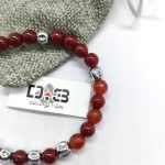 Materiale: Pietra Agata Rossa, Pietra di Ematite Argentata Martellata. I distanziatori e la chiusura sono materiali anallergici e nickel-free.