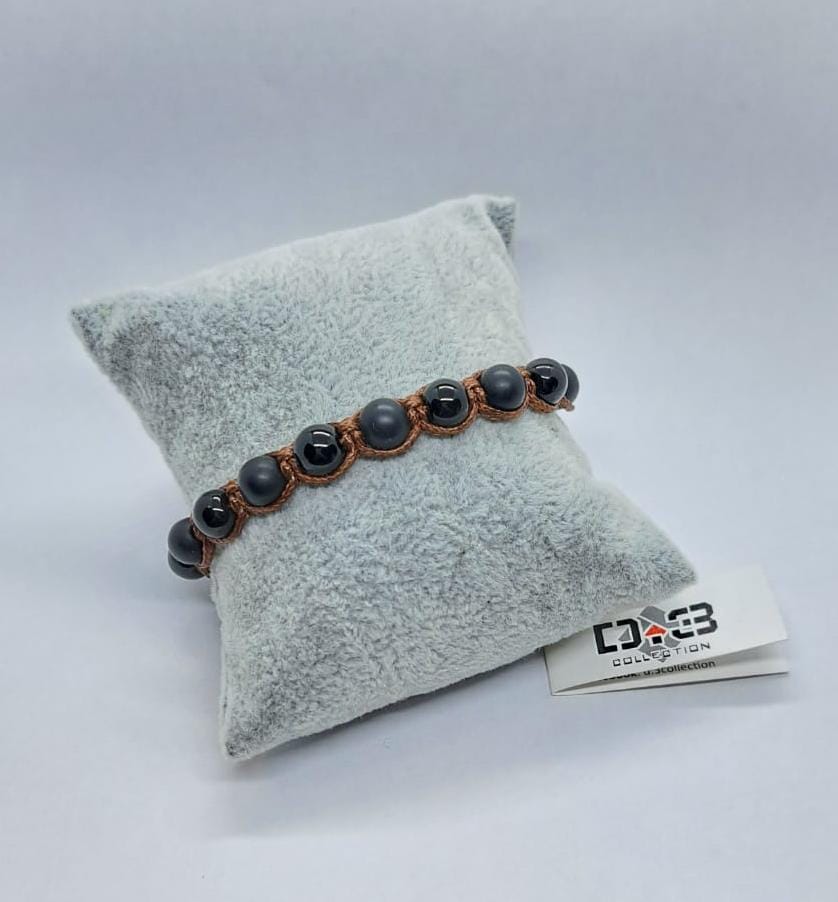 Bracciale Tibetano Bicolore nero realizzato a mano dai nostri artigiani con pietre di Onice nera opaca e Ossidiana nero lucido dal diametro di 8mm.