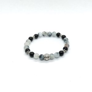 Bracciale Tibetano realizzato a mano dai nostri artigiani con pietre di Mookaite marrone dal diametro di 8mm.