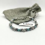 Bracciale realizzato a mano con pietre naturali e nodini in acciaio.